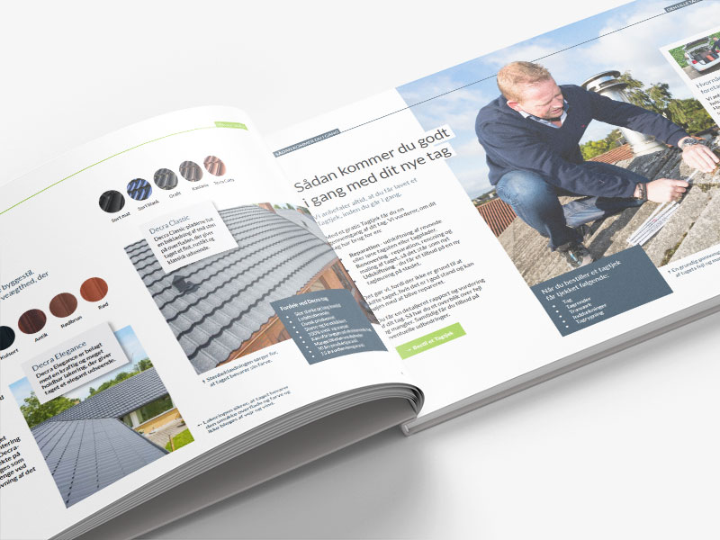 Den lille tagbog giver dig overblik over dine muligheder, når du skal vælge tagtype, tilbehør, overflade og farve mm.