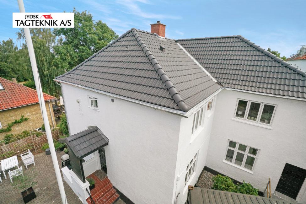 Huset i Gentofte fik lagt et nyt betontegltag og nye zinktagrender. Der blev samtidig monteret nye Velux ovenlysvinduer. Hos Jydsk Tagteknik er din...