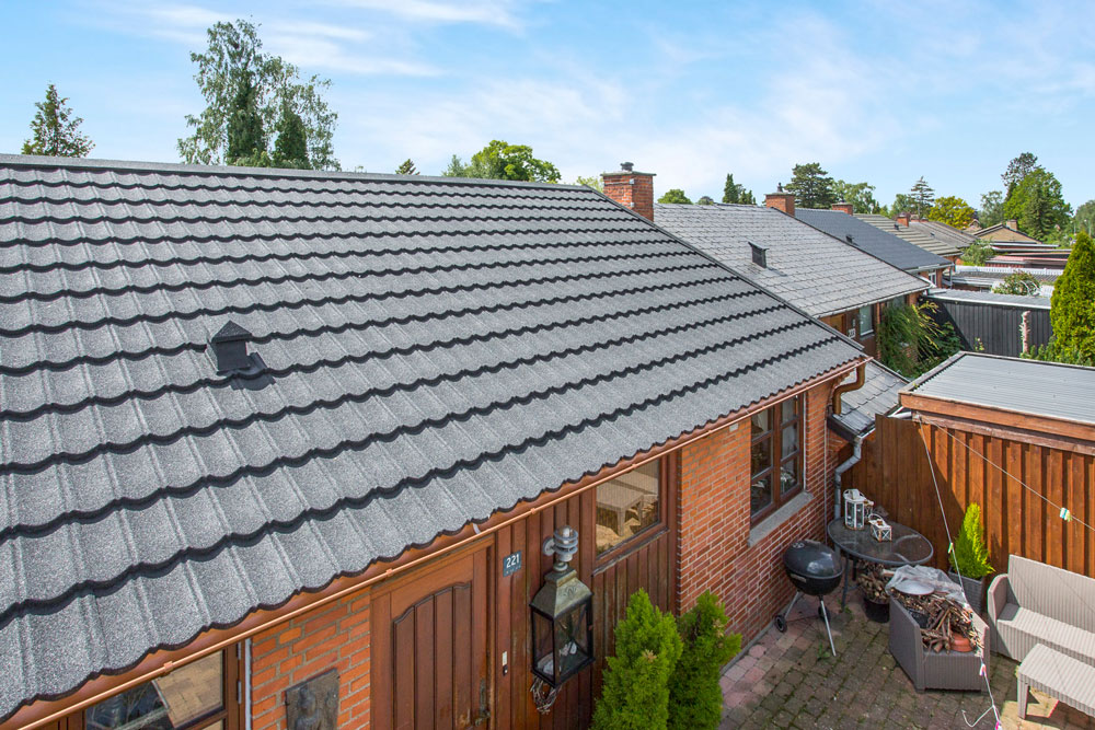 Decra Classic pladerne fås også i flere farver, hvor sort igen er meget eftertragtet. Du kan også få et flot resultat med Decra Classic i rød, rødbrun eller antik.