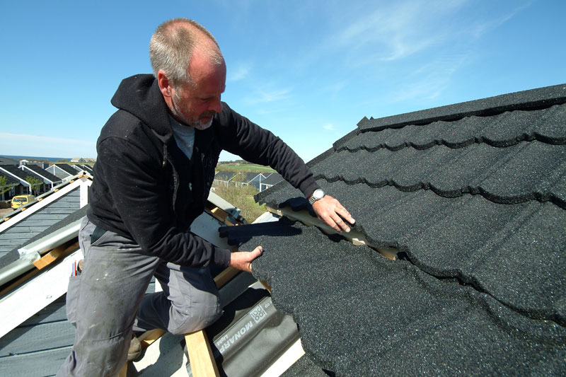 Nyt Decra tag lægges ovenpå et ældre tag af skifereternit.