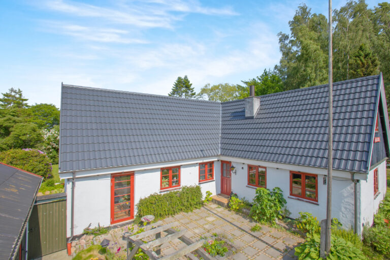 Med udsigt til skov og skønne marker, skiftede vi det gamle tegltag ud med lækkert Decra sort mat. Vedligeholdelses frie sternbrædder og vindskeder...