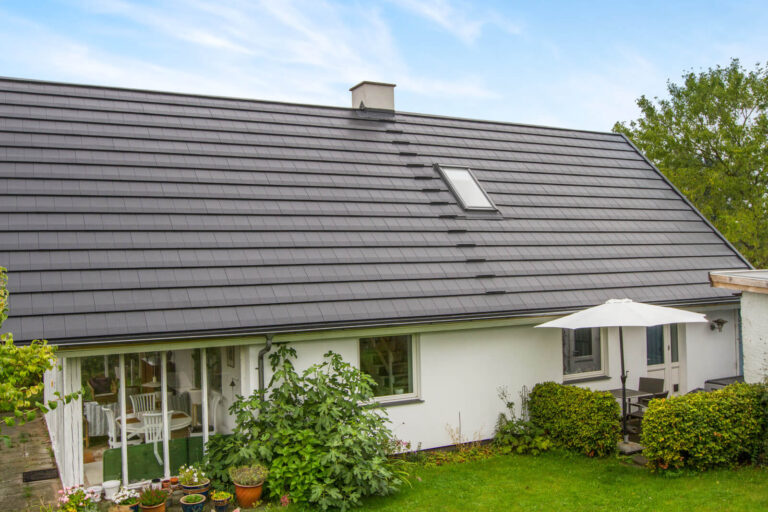 Forside | Nyt Quadrotag blev monteret på villaen i Middelfart, villaen gik også monteret nye metal tagrender.