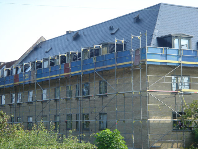 Arbejdernes Andelsboligforening (AAB) AAB i Odder: 15.673 m2 renovering (antrasitgrå). Udført tagrenovering, rensning og maling af B6 bølgeeternitplader. Start: 1/6-2008 Slut: 29/8-2008.