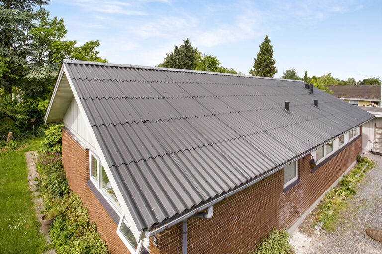 På denne ejendom i Slangerup fjernede vi det gamle Eternittag, og lagde nyt B7 Bølgeeternit. Vi sløjfede en skorsten, og monterede nye Icopal...