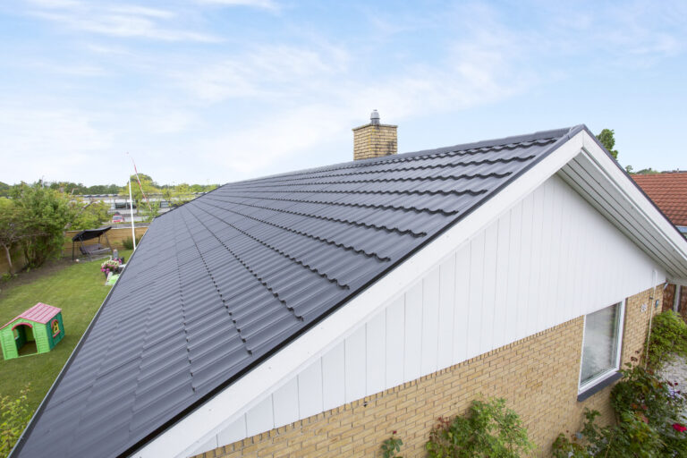 Dette skønne hus på Brøndby Strand, fik monteret nyt sort Decra Classic, sortmalede vindskeder, samt Lindap Kobber metallic tagrende . Arbejdet tog os...